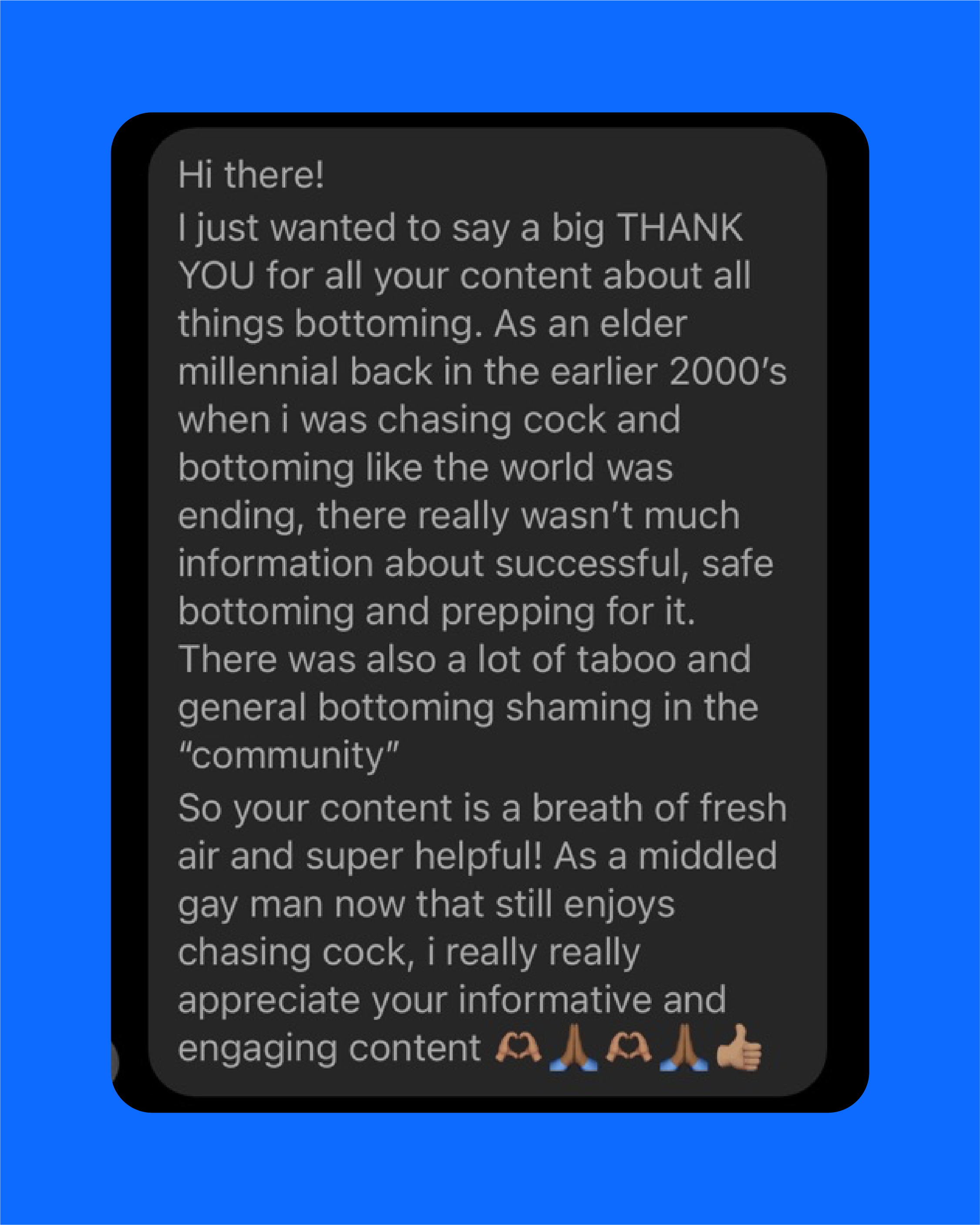 I co-founded The Bottom's Digest in 2021 with my hubz, Mike. Since day one, we said, "Anyone can bottom," and now over 300,000 of y'all are listening to your bodies and prioritizing your pleasure